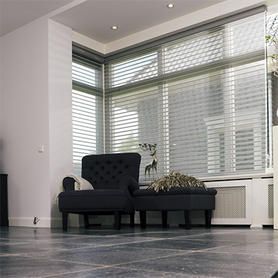 De elegantie van voile stoffen met de licht regulerende eigenschappen van een horizontale jaloezie. Een combinatie van het beste van 2 werelden: elegantie en functionaliteit. Door een unieke constructie zweven de lamellen tussen beide voiles, waardoor u een mooi ongehinderd zicht naar buiten houdt. De collectie bestaat uit diverse stofstructuren, met ieder haar eigen elegante eigenschappen. Er is keuze uit een zeer "zachte" voile met een heel helder doorzicht, maar ook een grovere weving van de voile voor een moderne uitstraling. Iedere stofstructuur wordt geleverd in eigentijdse kleurstellingen welke perfect passen in ieder interieur.